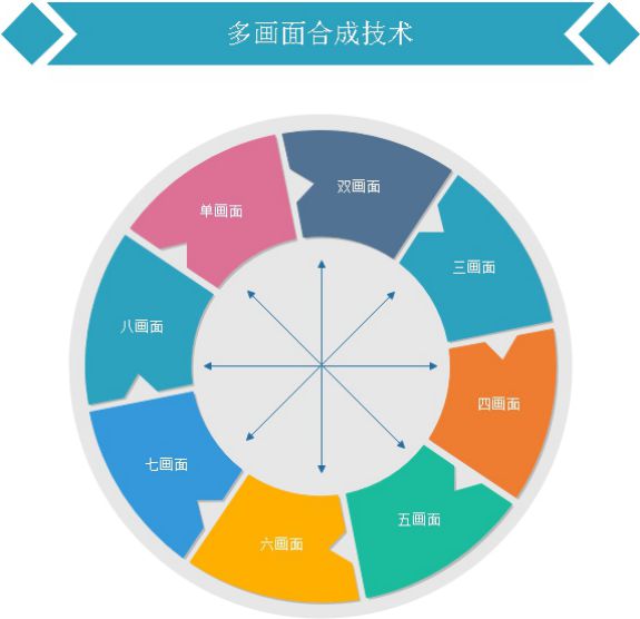 多畫面同屏編輯視窗的數(shù)字設(shè)定,根據(jù)采用攝像機(jī)的數(shù)量,對(duì)合成畫面進(jìn)行畫中畫、三畫面、四畫面、五畫面、六畫面、七畫面、八畫面任意編輯組合。