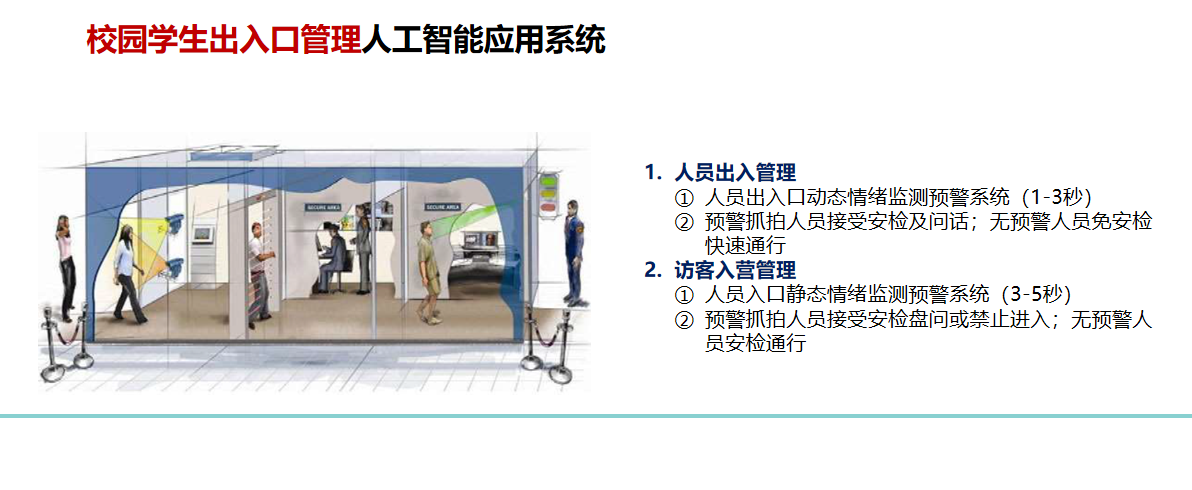這是基于AI智能的最新高科技創(chuàng)新技術(shù)產(chǎn)品,系統(tǒng)通過圖像振動影像分析技術(shù),可實(shí)時(shí)分析監(jiān)測公共場合人員的心理、情緒狀態(tài),系統(tǒng)最快可在1~3秒內(nèi),就能快速的在人群中篩選出具有暴力恐怖傾向的可疑分子,并自動報(bào)警提示。在可疑分子實(shí)施暴力事件之前,提前預(yù)警,真正做到防范于未然,保障人民的公共安全。
