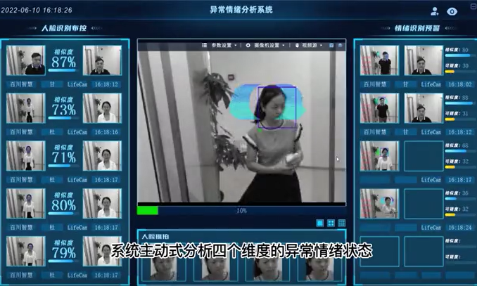 2,系統(tǒng)通過高幀率視頻流分析技術(shù),采集人的頭頸部肌肉微震動轉(zhuǎn)換為三維運(yùn)動軌跡,通過核心的算法公式分析視頻中人物的生物特征及其向量數(shù)據(jù),基于測量生理和心理參數(shù),結(jié)合獨(dú)有的算法模型,快速分析出異常情緒風(fēng)險(xiǎn)值。