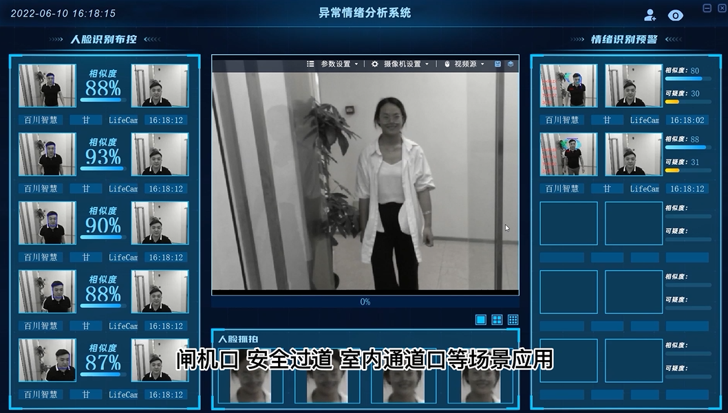1、系統(tǒng)最快可在1-3秒內(nèi),就能快速的在人群中篩選出具有危險(xiǎn)情緒的可疑人員,并自動報(bào)警提示。在可疑人員有危險(xiǎn)情緒行動之前,提前預(yù)警,做到防范于未然,保障人民的公共安全。